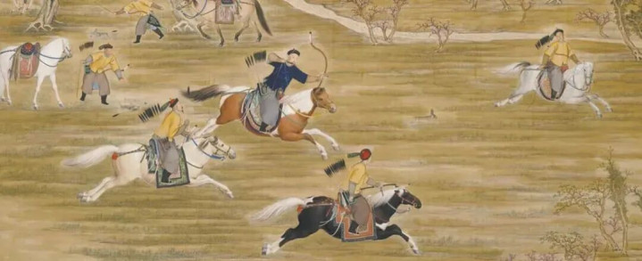 《乾隆皇帝射猎图》清·郎世宁等绘故宫博物院藏