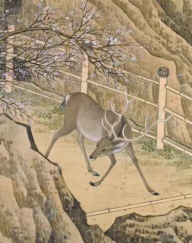 《乾隆宫中行乐图轴(局部)》所绘麋鹿,或为作者金廷标亲往南苑所见。图源:北京亦庄微信公众号